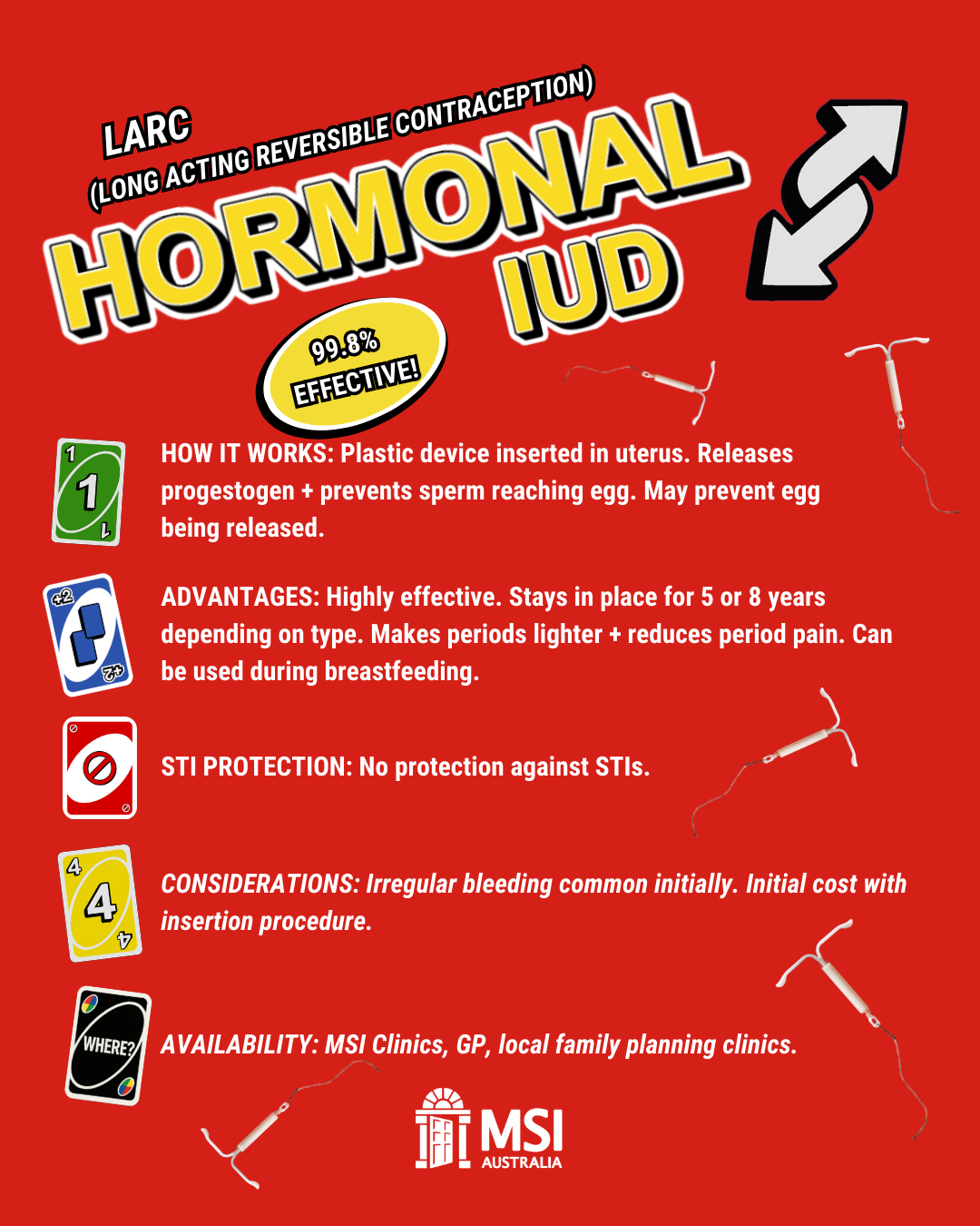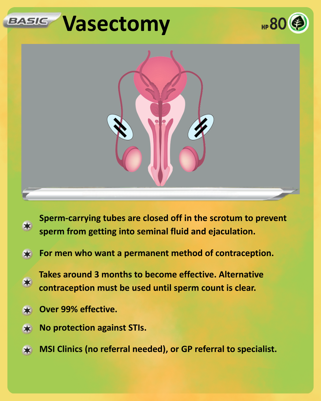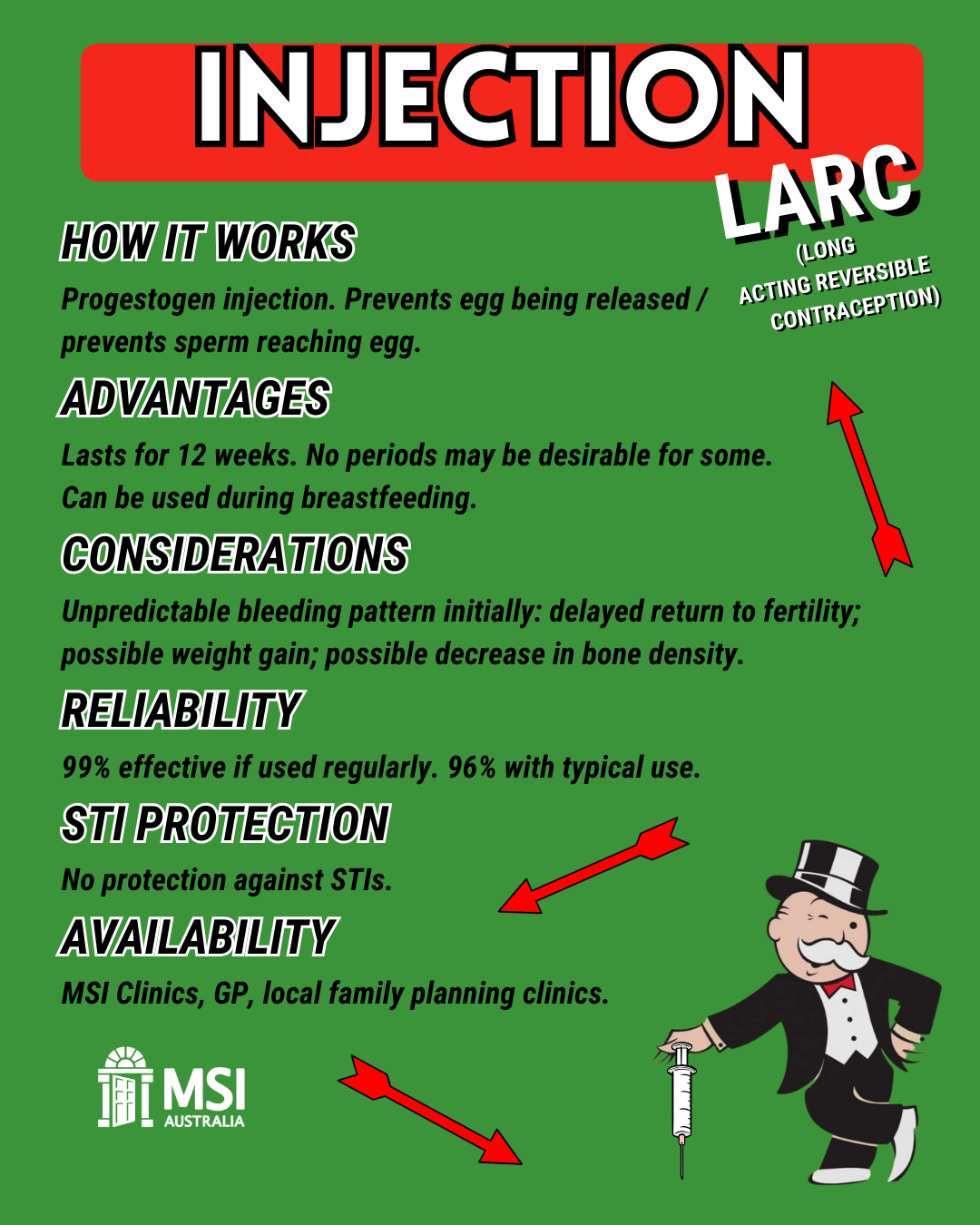 For men, there are currently no long-acting reversible methods available in Australia. However, if you have completed your family or you do not wish to have children, you may consider a vasectomy a safe, painless, permanent method.