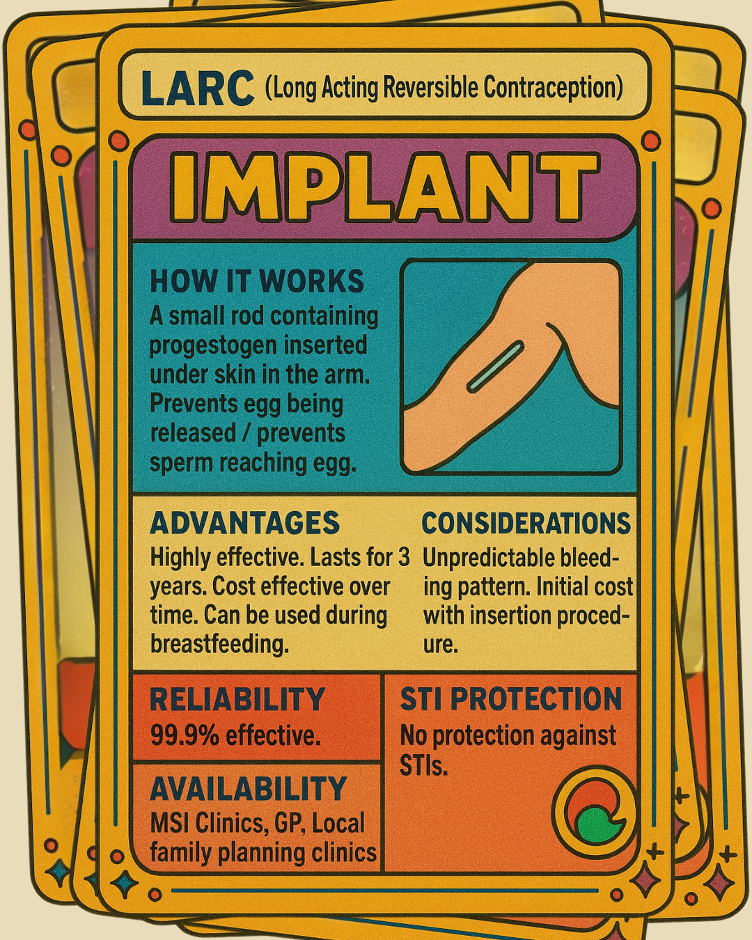 There is a range of long-acting reversible contraception (LARC) options for women and people with uteruses. LARC is a category of ‘set-and-forget’ contraceptive methods that prevent unplanned pregnancy with a high degree of reliability and efficacy. They can last for months or years, depending on the method chosen.